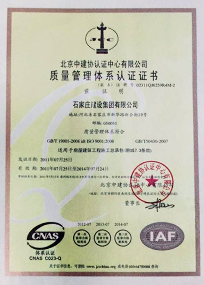 質量管理體系認證證書