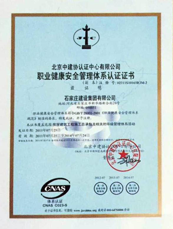 職業健康安全管理體系認證證書